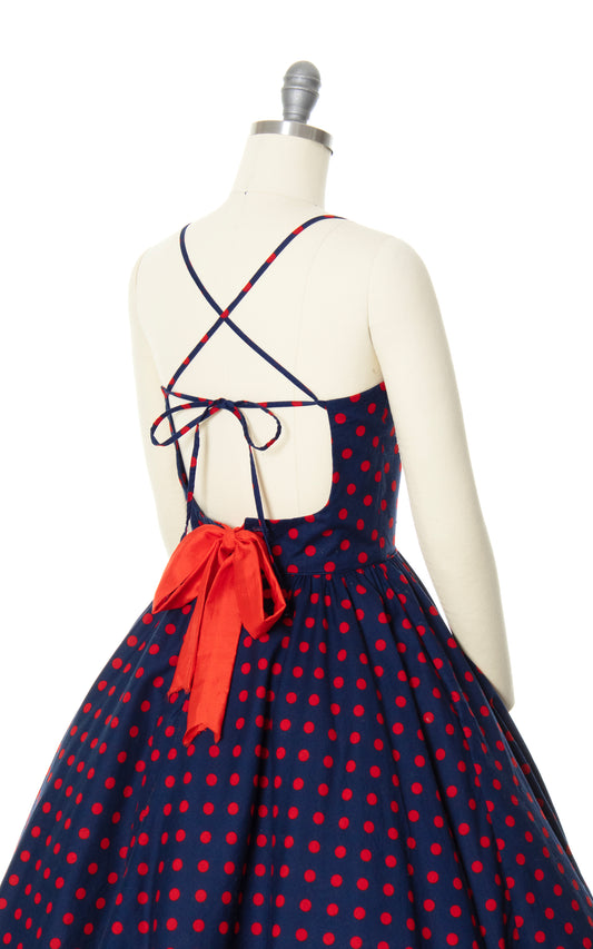 1970s Polka Dot Lace-Up Cotton Sundress | x-small