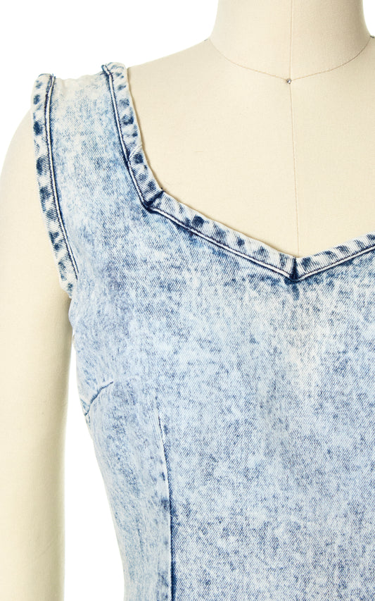 1980s FREDERICK'S OF HOLLYWOOD Acid Wash Denim Dress | x-small/small