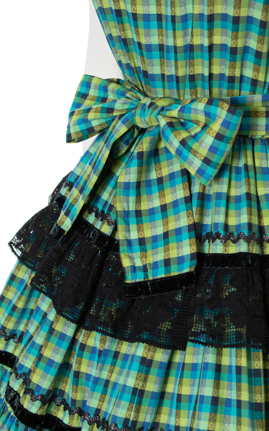 1960s Plaid Cotton Lace Sundress | small/medium