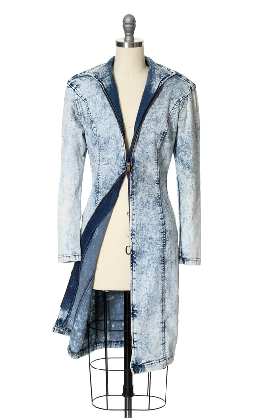 1980s Acid Wash Denim Zip-Up Dress | x-small/small
