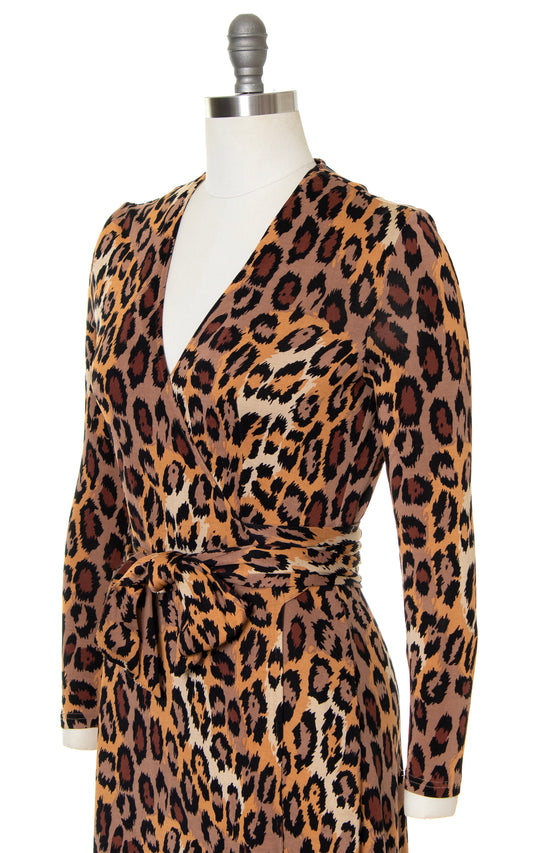 1990s DIANE VON FURSTENBERG Leopard Print Silk Wrap Dress | small/medium