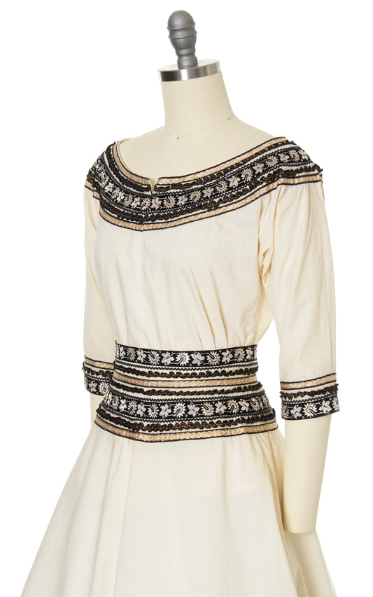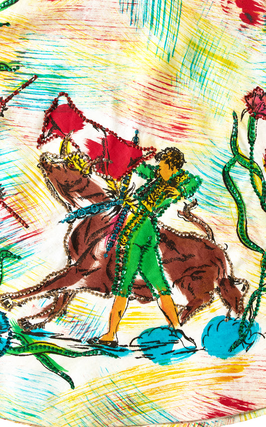 1950s Mexican Hand-Painted Novelty Print Sequined Circle Skirt | medium