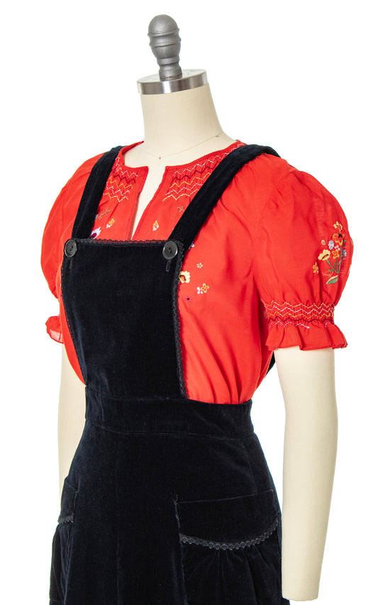 1970s Black Velvet Pinafore Maxi Dress | small
