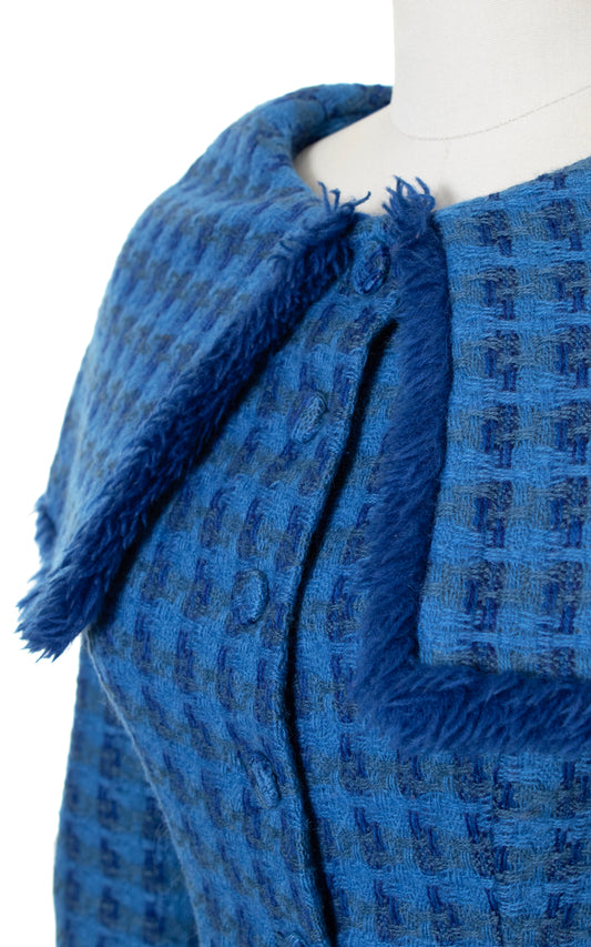 1950s Plaid Wool Dress with Fringe Collar | small