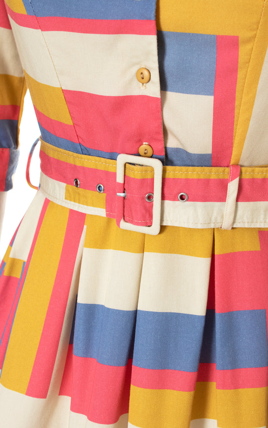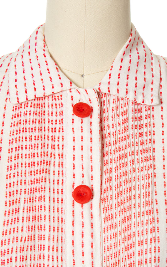 1950s Red Striped Cotton Shirtwaist Dress | small