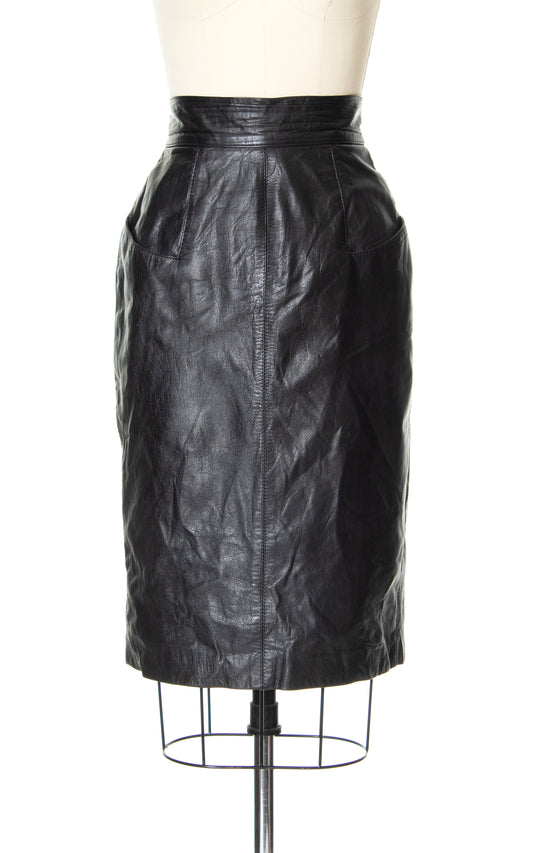 1980s Black Leather Pencil Skirt | small