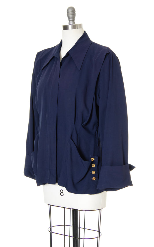 1940s Navy Blue Rayon Jacket | x-large