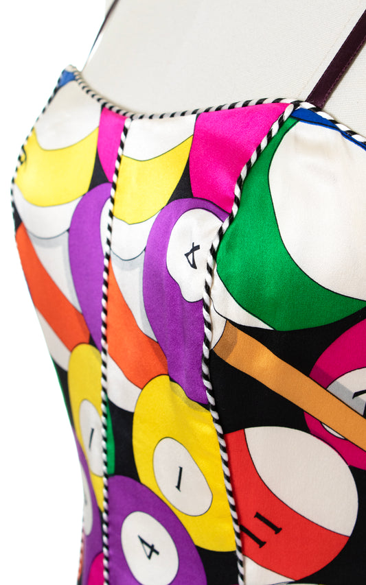1980s NICOLE MILLER Silk Billiards Novelty Print Dress | small/medium