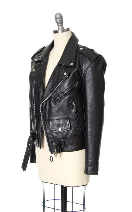 1980s Black Leather Moto Jacket | x-small/small