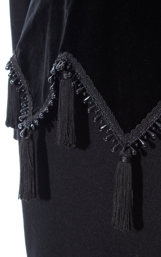 1980s Beaded Tassels Wool & Velvet Dress | small