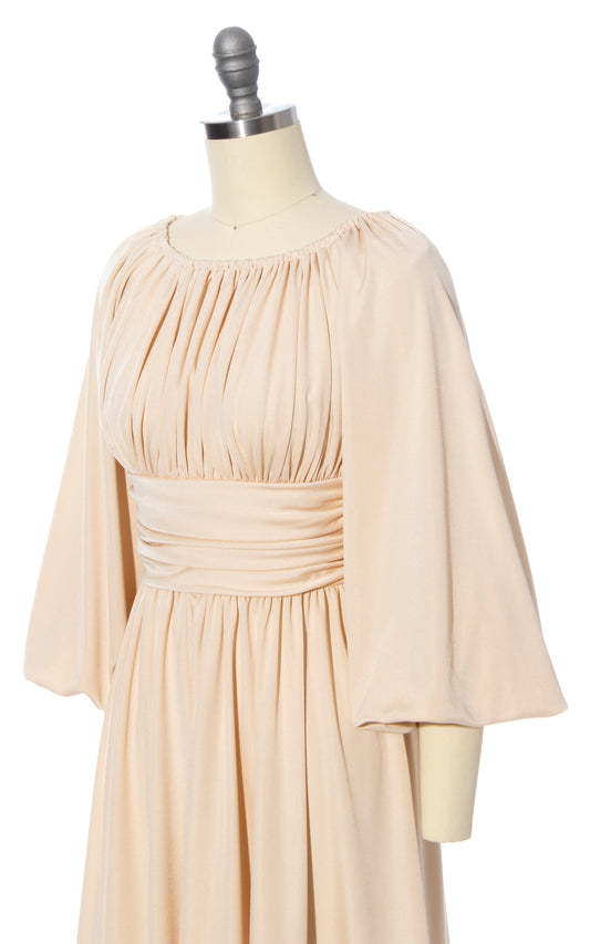 1970s Grecian Gathered Champagne Jersey Dress | x-small
