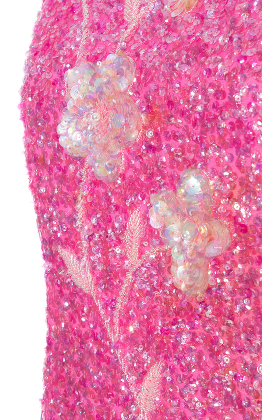 1960s Floral Sequined Pink Party Dress | large/x-large