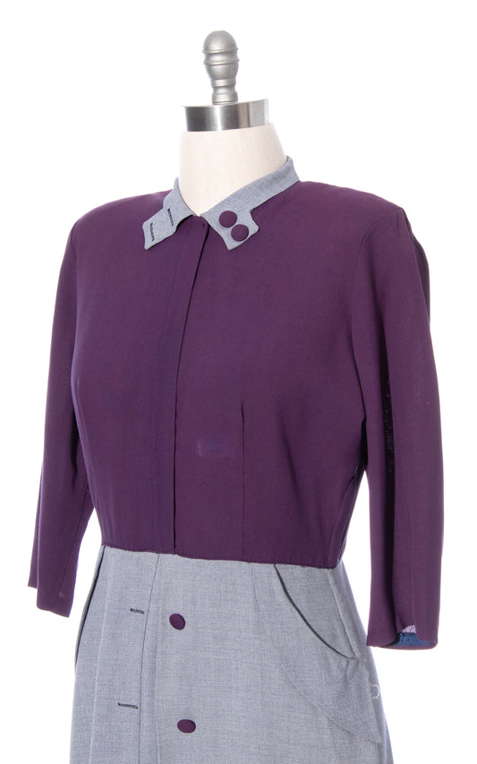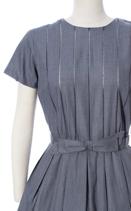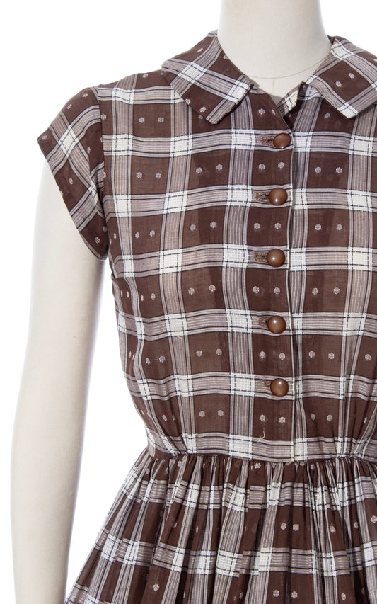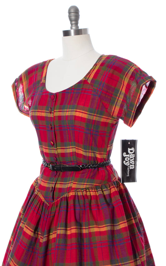DEADSTOCK 1980s does 1950s Plaid Drop Waist Cotton Shirt Dress | medium