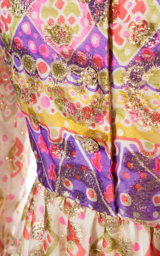 1970s Metallic Geometric Maxi Party Dress | small/medium