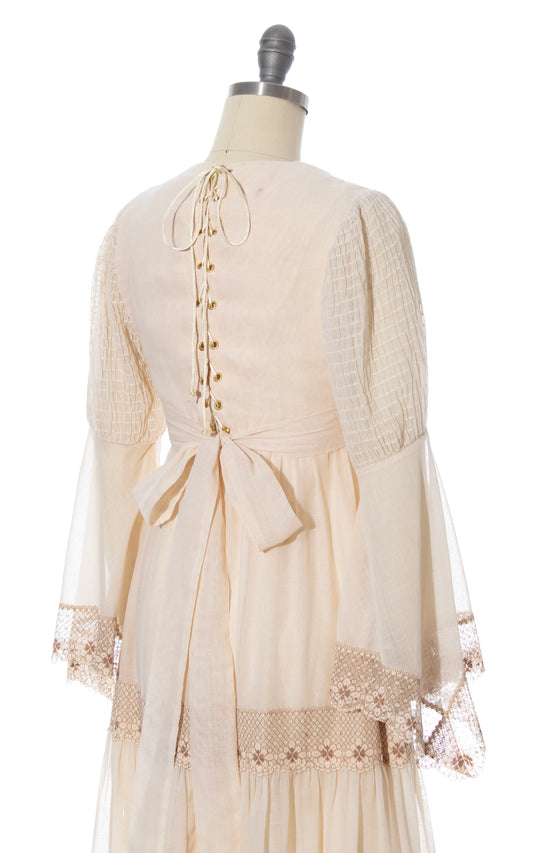 1970s Gunne Sax Style Lace-Up Maxi Dress | x-small