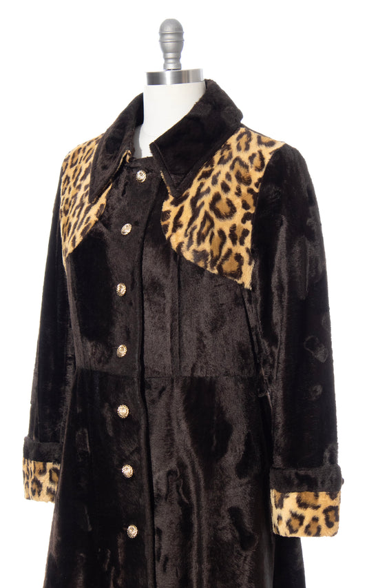 1970s Leopard Faux Fur & Brown Velvet Coat | medium/large