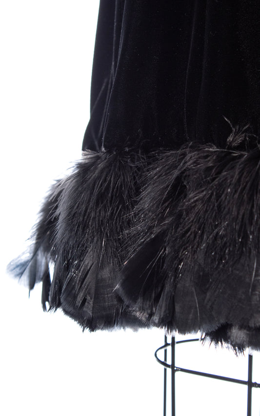 1960s MISS ELLIETTE Feathered Black Velvet Dress | small/medium
