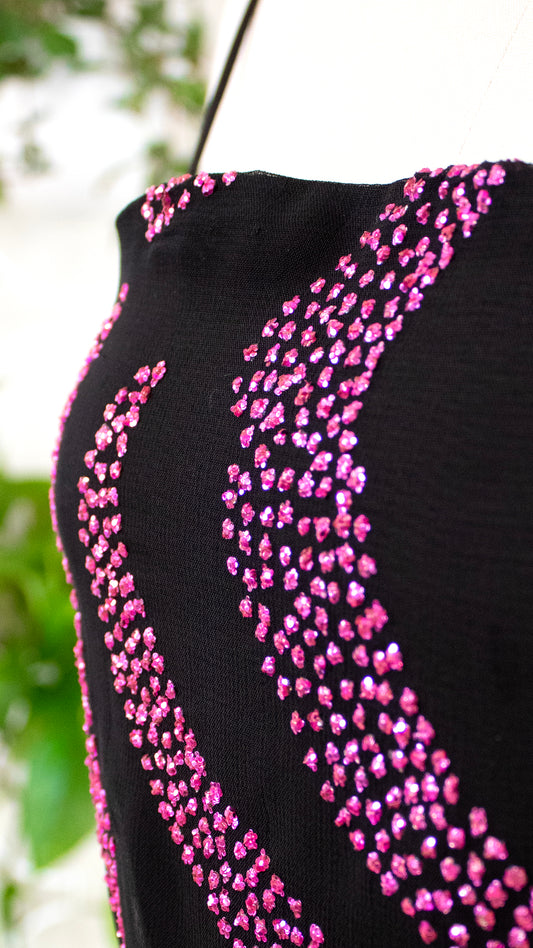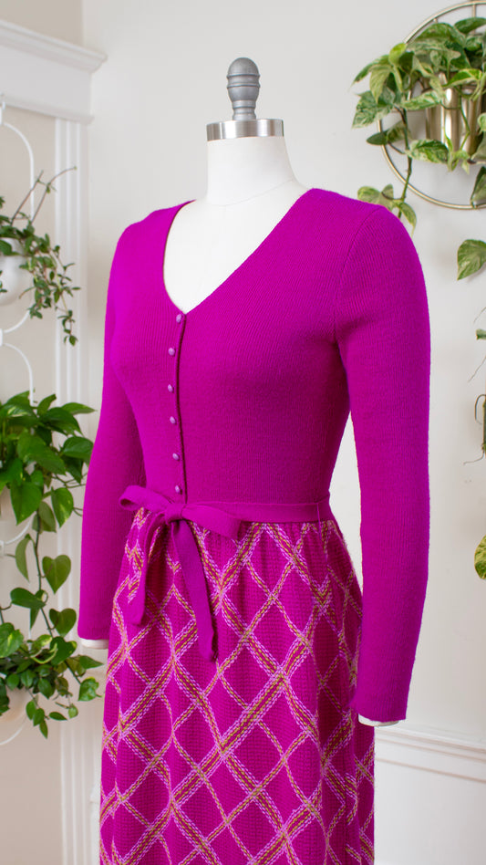 1970s Magenta Plaid Knit Maxi Dress | small/medium/large