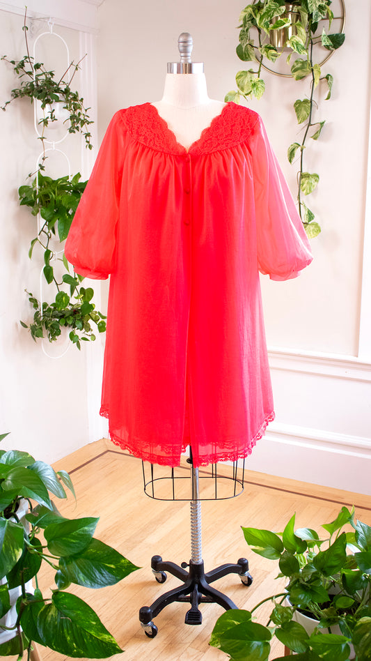 1960s Red Nylon Chiffon Peignoir Set | large/x-large