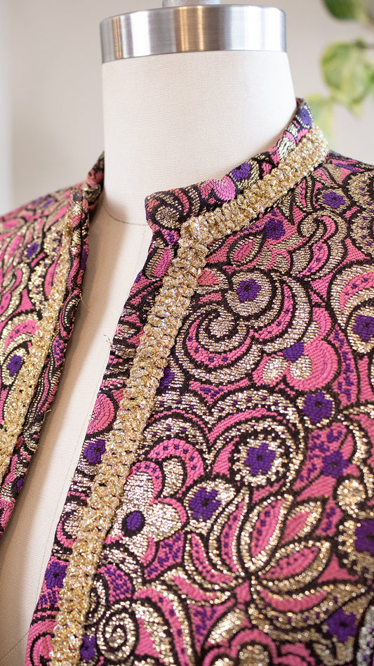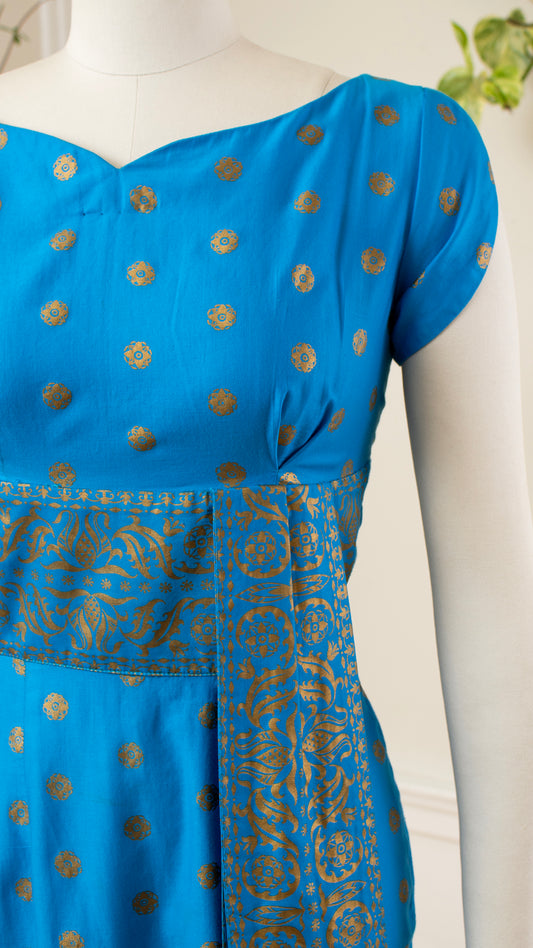 1960s Metallic Gold Printed Hawaiian Wiggle Dress | medium