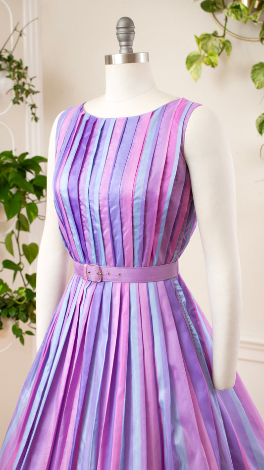 1950s Colorful Striped Shirtwaist Day Dress | small/medium