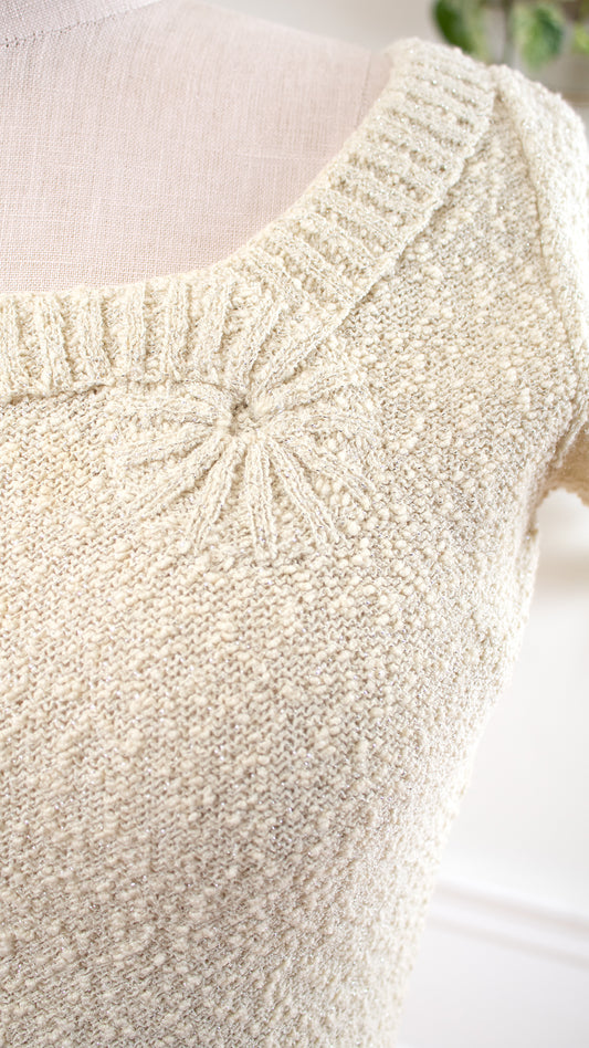 1950s 1960s Metallic Silver & Cream Knit Wool Sweater Dress | small/medium/large