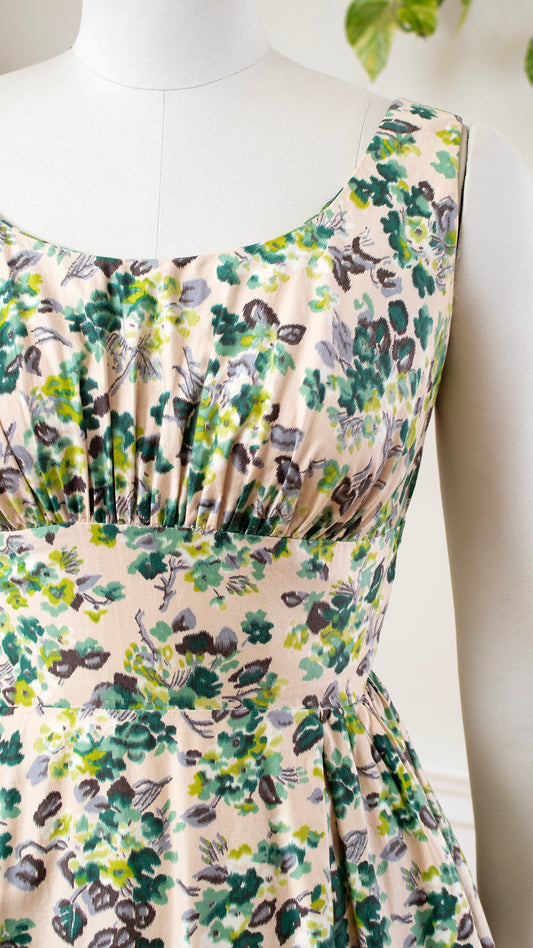 1950s ALFRED SHAHEEN Floral Hawaiian Halter Dress | x-small/small