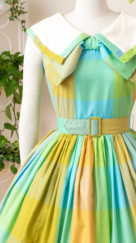 1950s 1960s Green Checkered Portrait Collar Day Dress | small