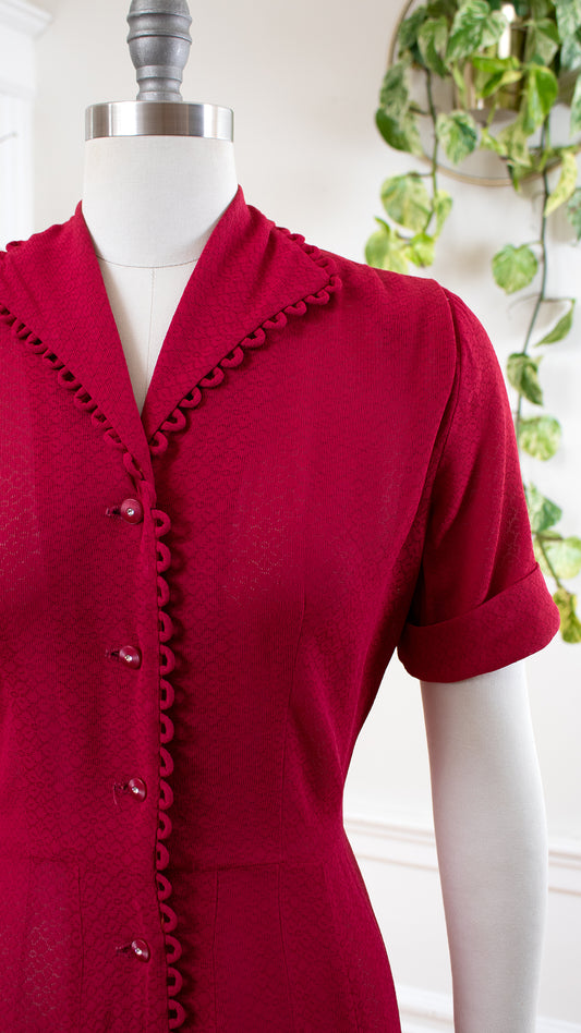 1940s Red Loop-Trim Lacy Shirtwaist Dress | medium