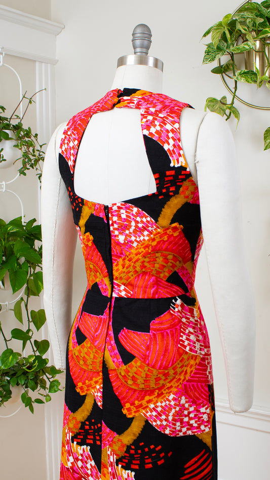 1970s Psychedelic Barkcloth Maxi Dress | small