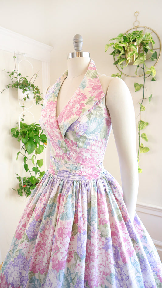 1980s 1990s Hydrangea Cotton Halter Sundress | medium