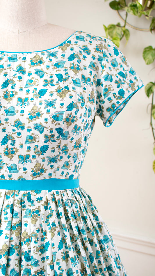 1950s 1960s Butterflies & Hats Novelty Print Day Dress | large/x-large
