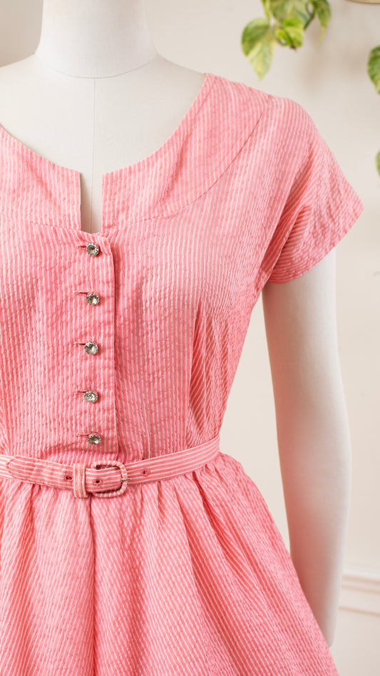 1950s Pink Striped Shirtwaist Day Dress | small/medium