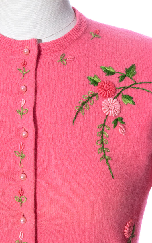 1950s Floral Embroidered Wool Angora Cardigan | small/medium