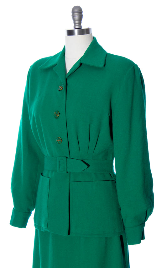 1940s Emerald Green Wool Crepe Skirt Suit | medium