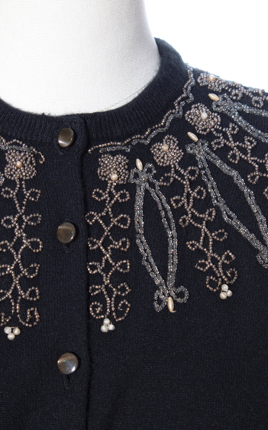 1950s DARLENE Beaded Acrylic Knit Cardigan | medium/large