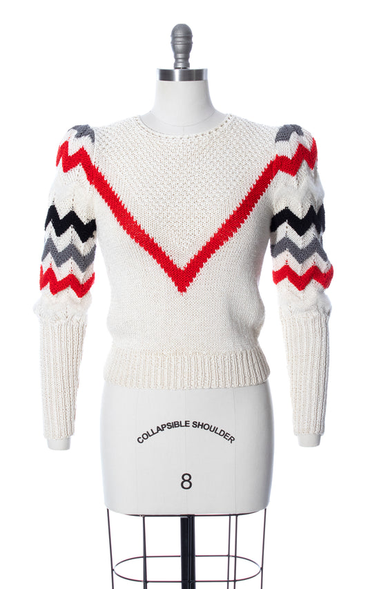 1980s Chevron Knit Rayon Angora Sweater | x-small/small