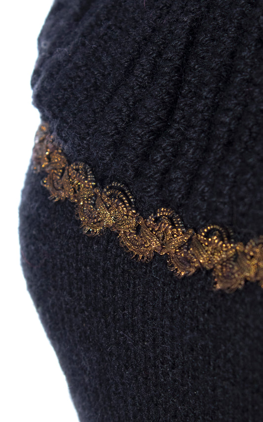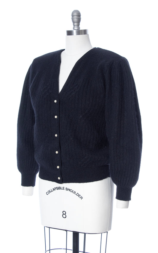1980s Black Wool Angora Knit Puff Sleeve Cardigan | large