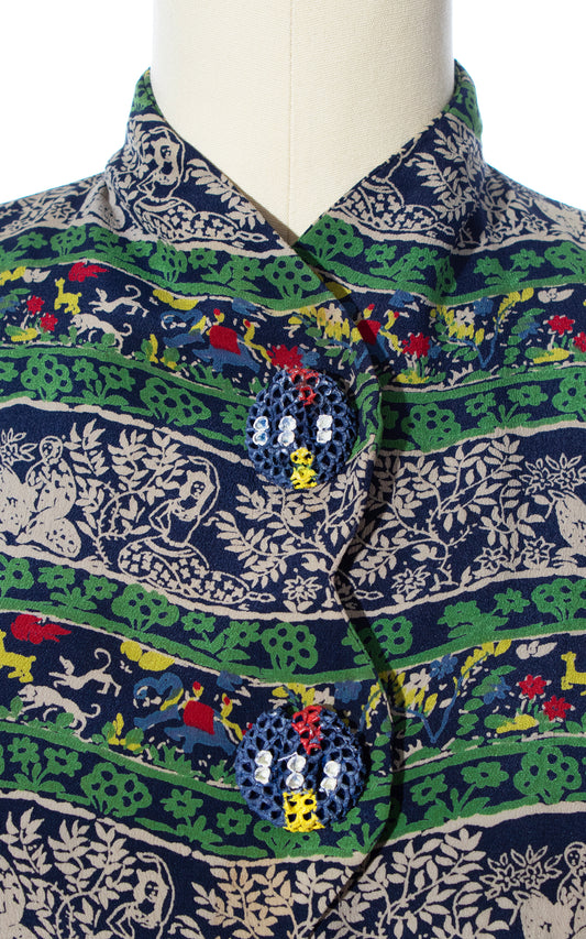1940s Novelty Print Rayon Crepe Shirt Dress | x-small/small