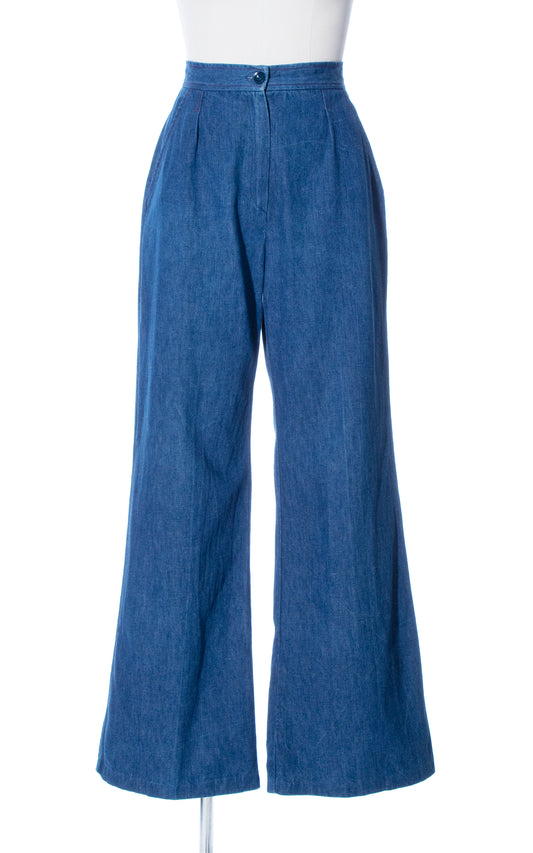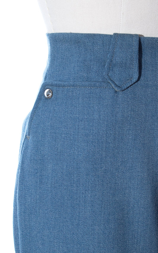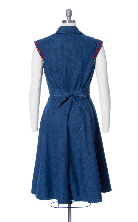 1970s Calico Trim Denim Tie Waist Dress | small/medium
