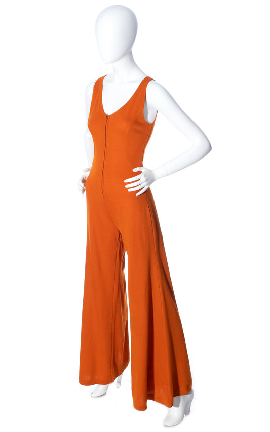 1970s Burnt Orange Jersey Knit Jumpsuit | x-small/small