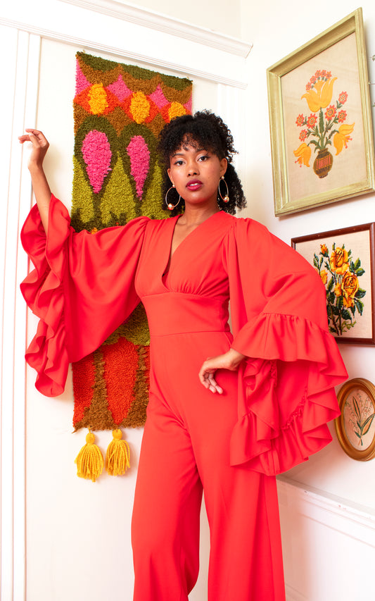 1970s Red Angel Sleeve Jumpsuit | x-small/small