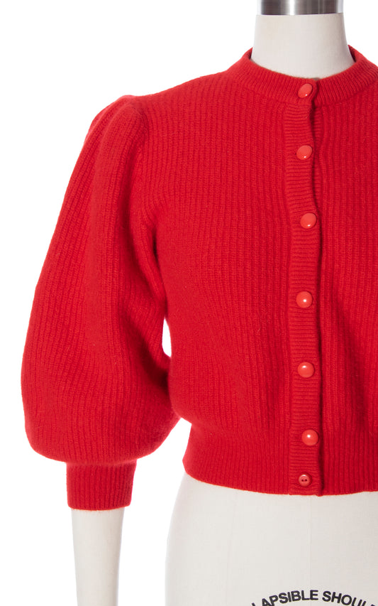 1980s Puff Sleeve Cropped Knit Sweater | medium