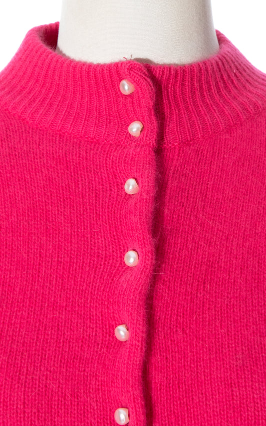 1980s Hot Pink Knit Wool Angora Cardigan | x-small/small/medium