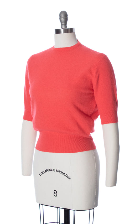1940s 1950s Hot Salmon Pink Knit Wool Sweater Top | small/medium/large