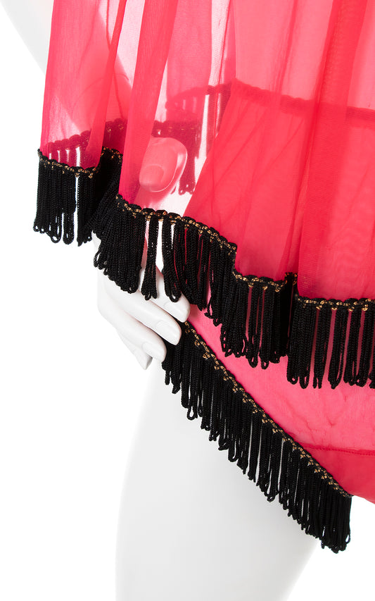 1960s Fringe Sheer Red Nylon Lingerie Set | large