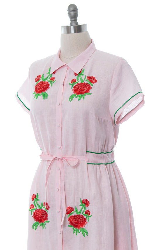 MODERN 1950s Style Embroidered Linen Dress | large/x-large
