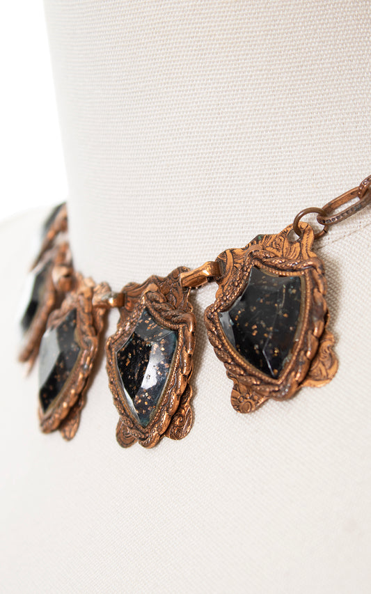 1940s 1950s Black Glitter & Copper Tone Necklace