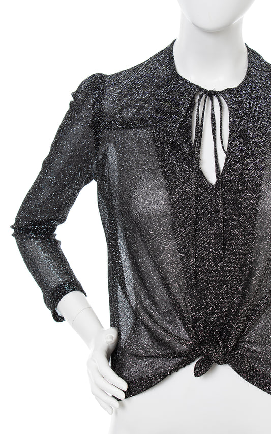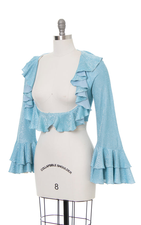 1970s Metallic Heart Cutout Ruffled Crop Top | small