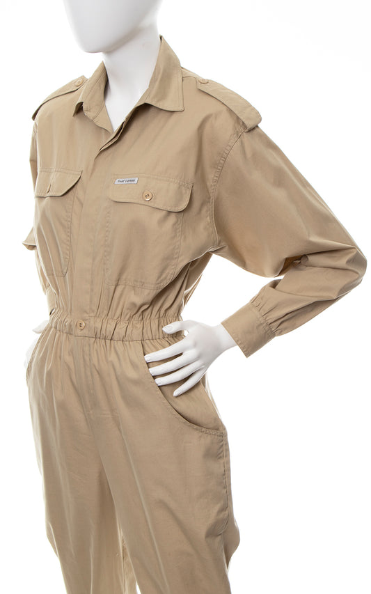 1980s Khaki Cotton Workwear Jumpsuit | small/medium